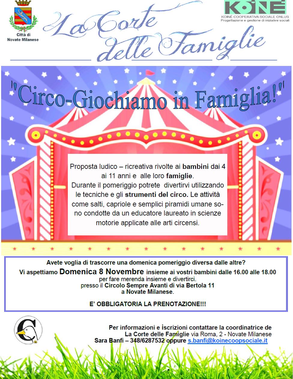 Domenica 8 novembre si svolgerà il primo incontro dell’iniziativa Circo-giochiamo in famiglia!
