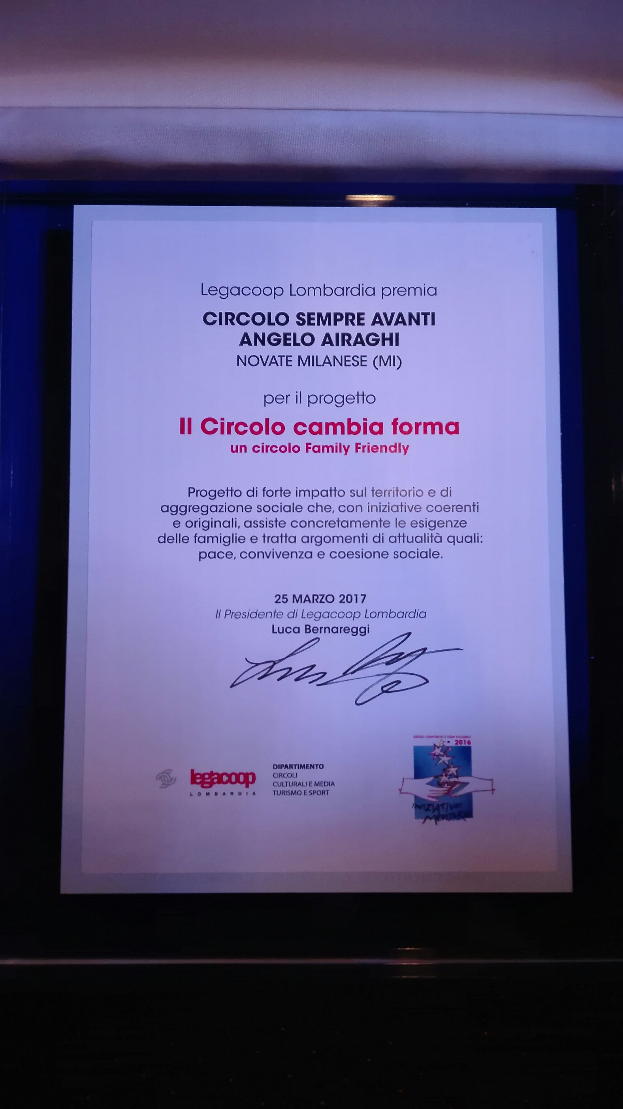 Il Circolo è stato premiato per il suo impegno sul territorio di Novate Milanese, grazie a tutti quelli che ci hanno sostenuto.