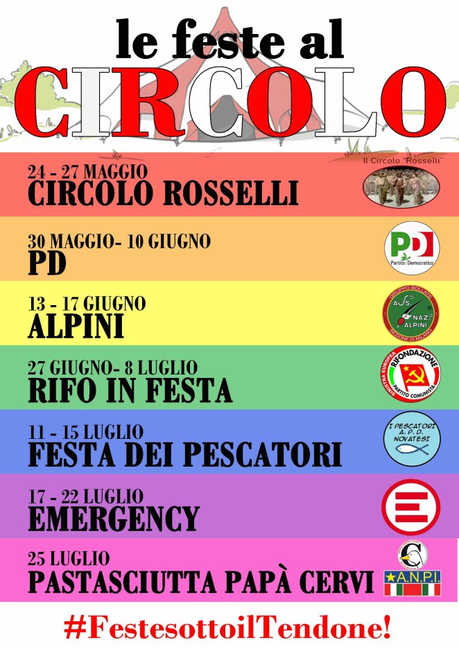 Feste sotto il Tendone 2018 Ecco il programma delle feste sotto il tendone, solo al Circolo! Condividi: Fai clic per condividere su X (Si apre in una nuova finestra) X Fai clic per condividere su Facebook (Si apre in una nuova finestra) Facebook Mi piace Caricamento... Correlati
