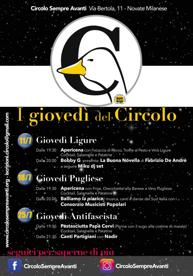 11, 18 e 25 luglio, i #Giovedì sera al Circolo!