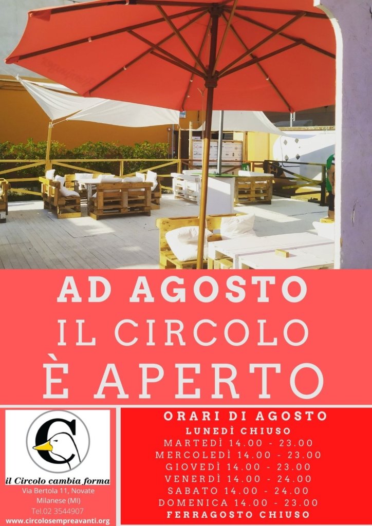 Agosto al Circolo Sempre Avanti Gli orari di agosto del Circolo Sempre Avanti! Vi aspettiamo! Condividi: Fai clic per condividere su X (Si apre in una nuova finestra) X Fai clic per condividere su Facebook (Si apre in una nuova finestra) Facebook Mi piace Caricamento... Correlati