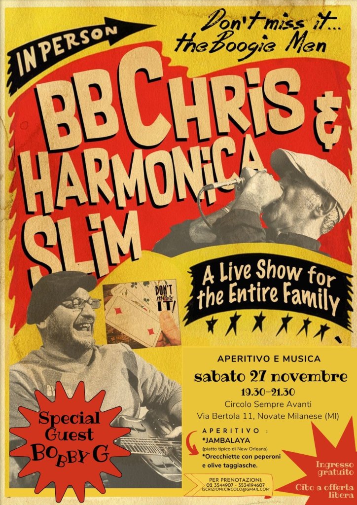 Ci saranno i BBChris Harmonica Slim e come Special Guest Bobby G.