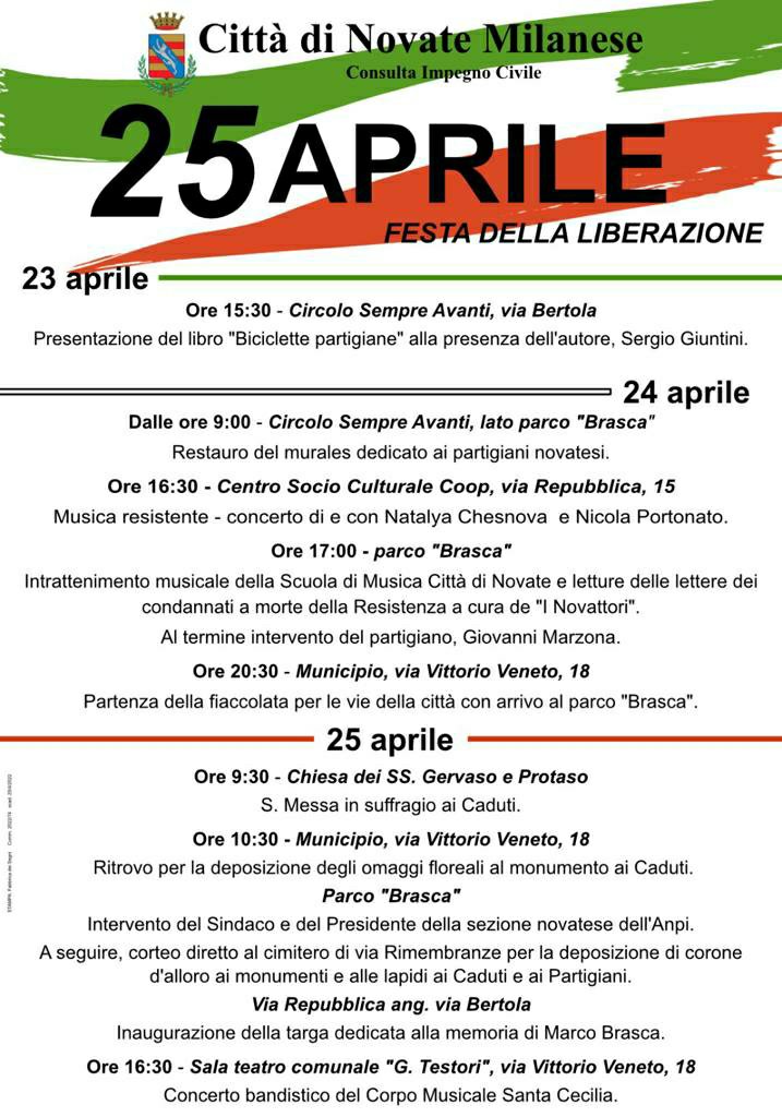 Ecco il programma del fine settimana del 25 Aprile 2022 di Novate Milanese.