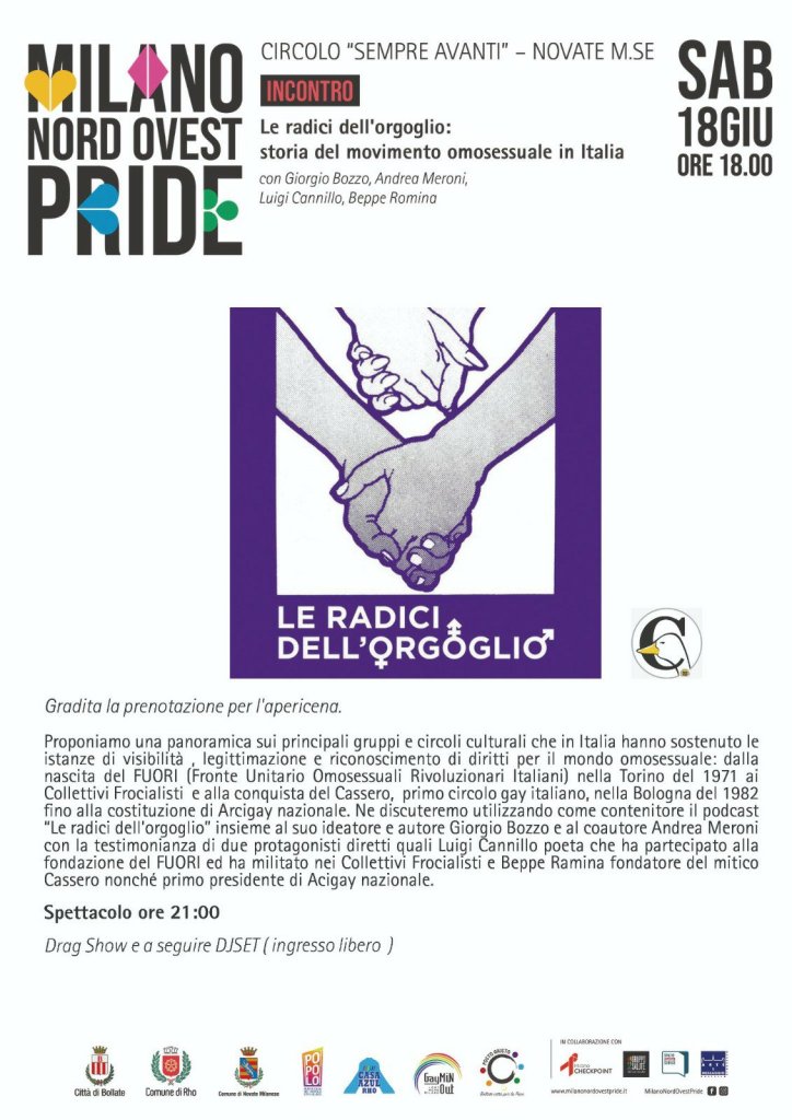 Alle ore 18.00 Incontro “Le radici dell’orgoglio: storia del movimento omosessuale in Italia”