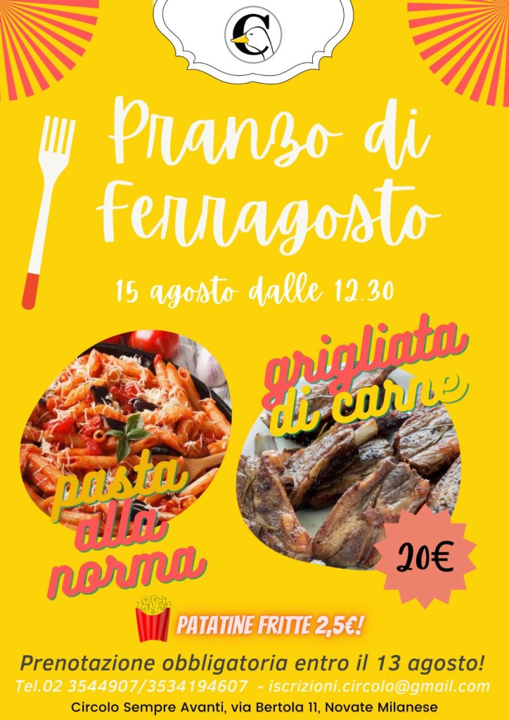 Il Circolo organizza il ✨Pranzo di Ferragosto✨