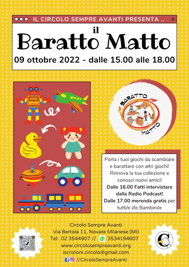 Ritorna il Baratto Matto il 9 ottobre dalle 15.00 alle 18.00