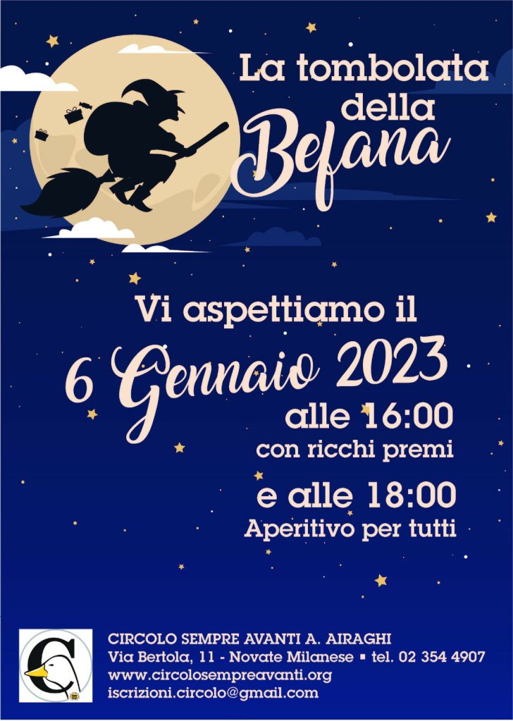 Tombolata della Befana Il 6 gennaio vi aspettiamo al circolo per la Tombolata della Befana dalle 16.00 e poi dalle 18.00 aperitivo per tutti Condividi: Fai clic per condividere su X (Si apre in una nuova finestra) X Fai clic per condividere su Facebook (Si apre in una nuova finestra) Facebook Mi piace Caricamento... Correlati