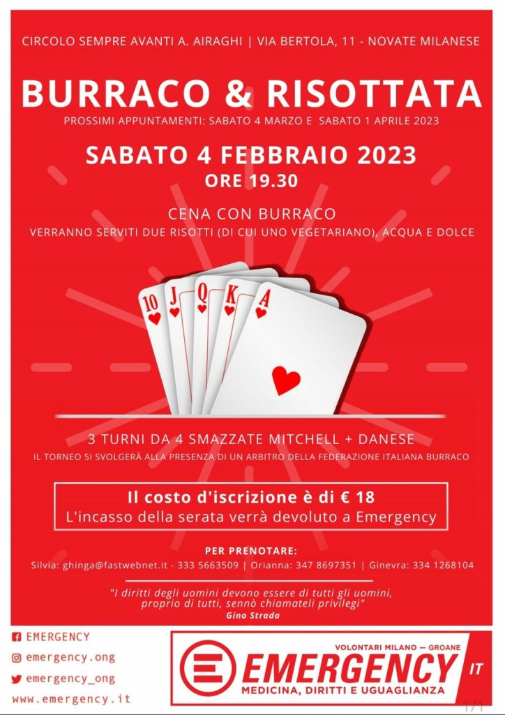 Sabato 4 febbraio dalle 19.30 il gruppo Volontari Milano Groane di EMERGENCY organizza al Circolo Sempre Avanti Angelo Airaghi