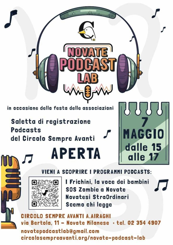 Allestiremo anche noi il banchetto e dalle 15 alle 17 apriamo la saletta radio del Circolo Sempre Avanti Angelo Airaghi dove potrete scoprire e partecipare ai programmi podcasts del canale Novate Podcast Lab