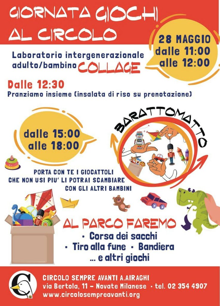 📍Nel pomeriggio *giochi al Parco Brasca* (tiro alla fune, corsa con i sacchi, ruba bandiera)
