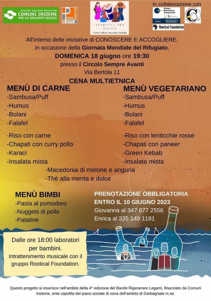 📌 In occasione della giornata mondiale del Rifugiato Domenica 18 giugno alle ore 19.30 Intrecci di donne, uno dei gruppi vincitori della 4^ edizione del Bando Rigenerare Legami, organizza una cena multietnica presso il Circolo Sempre Avanti Angelo Airaghi!