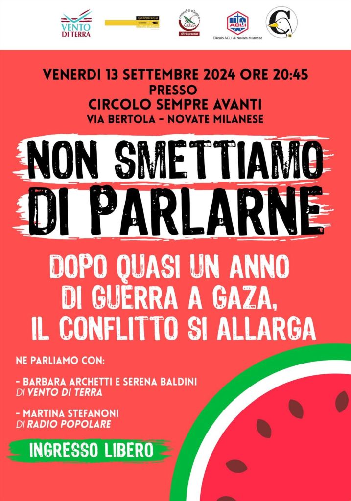 Non smettiamo di parlare di Gaza Non smettiamo di parlarne Vi aspettiamo al Circolo Condividi: Fai clic per condividere su X (Si apre in una nuova finestra) X Fai clic per condividere su Facebook (Si apre in una nuova finestra) Facebook Mi piace Caricamento... Correlati