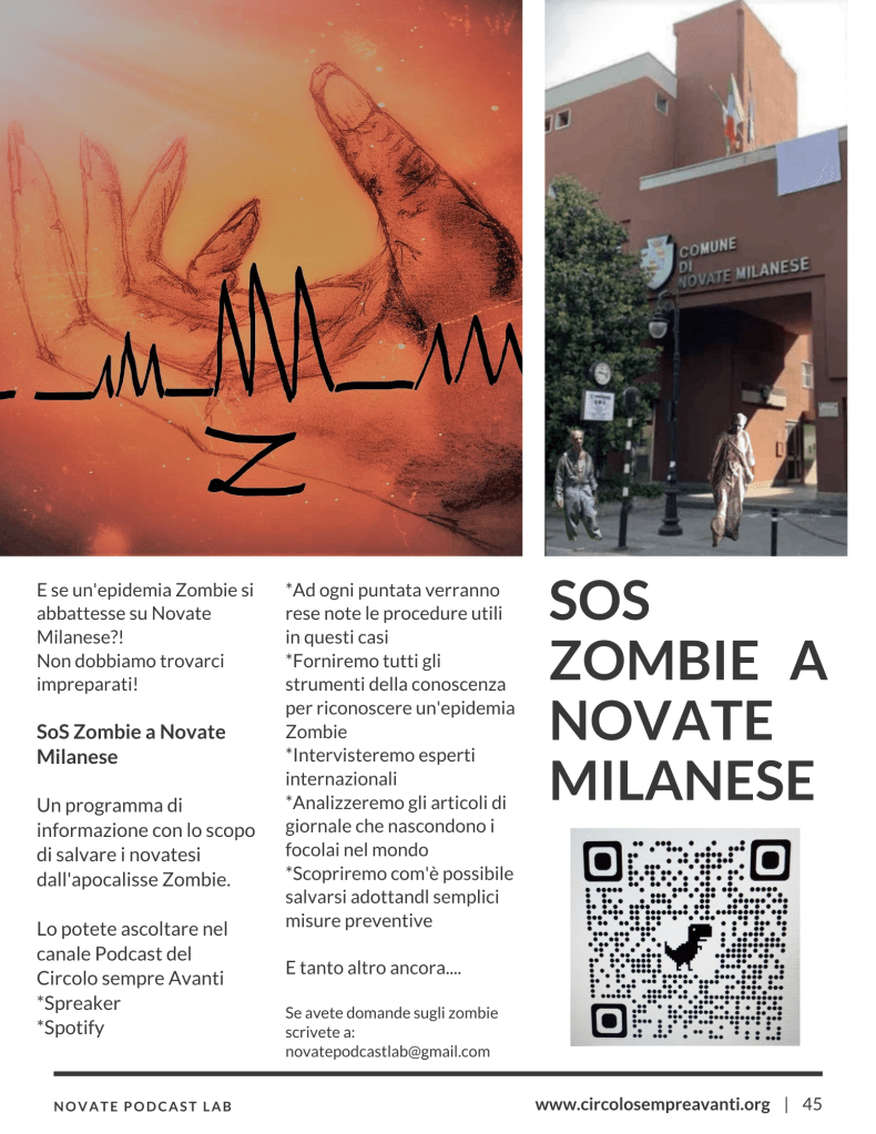 SOS Zombie a Novate Milanese : per diffondere quelle che sono le procedure utili e indispensabili nel caso in cui Novate Milanese e zone limitrofe, dovessero trovarsi di fronte a un’apocalisse zombie.