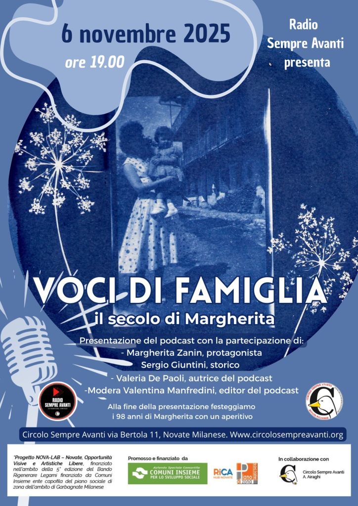 Il podcast Voci di Famiglia ripercorre la storia italiana del Novecento attraverso la vita di Margherita e dei suoi familiari, intreccia le vicende quotidiane di persone comuni con i grandi eventi storici, creando un mosaico di voci, memorie e documenti autentici.