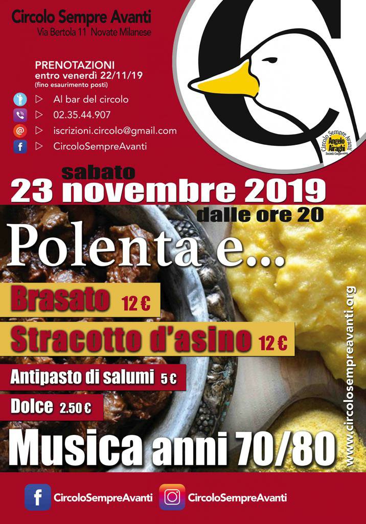 Vi aspettiamo numerosi il 23 novembre al Circolo Sempre Avanti per una serata in compagnia, cena e musica!