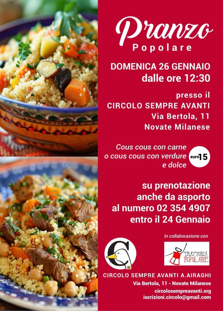 Domenica 26 gennaio alle 12h30 vi invitiamo a un pranzo al Circolo!