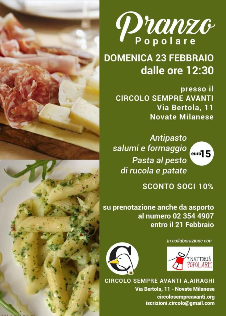Il 23 febbraio alle 12.30 vi aspettiamo per il Pranzo popolare del Circolo!