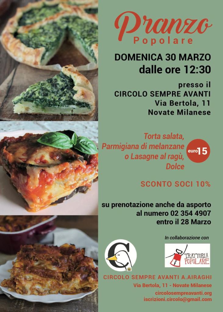Il 30 marzo vi aspettiamo per il pranzo popolare del Circolo!
