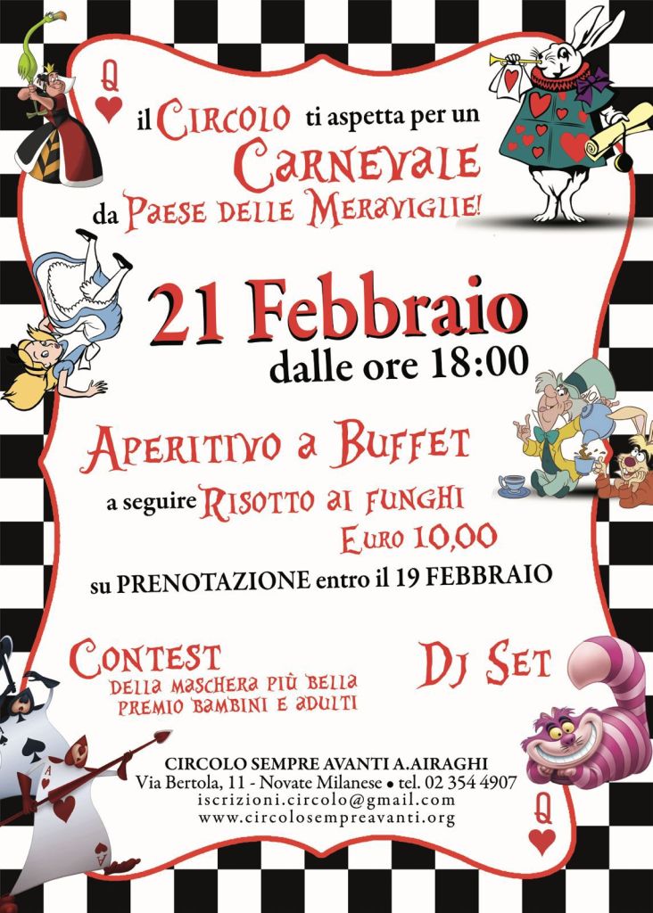 Festeggia il Carnevale 🎊 al Circolo, in un’atmosfera da Alice nel paese delle meraviglie!