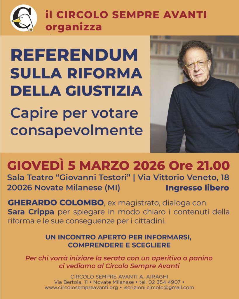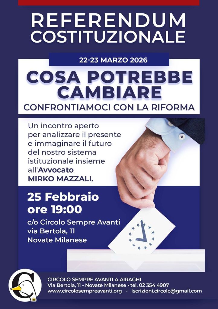 Ci vediamo al Circolo per capire meglio il quesito referendario con l’avvocato Mirko Mazzali e parlarne insieme.